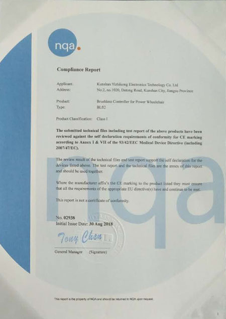 開發(fā)的輪椅控制器已經達到了國際先進水平,先后獲得了ISO9001-2008國際質量體系認證和**認證,是一家江蘇省守合同,守信譽企業(yè)。